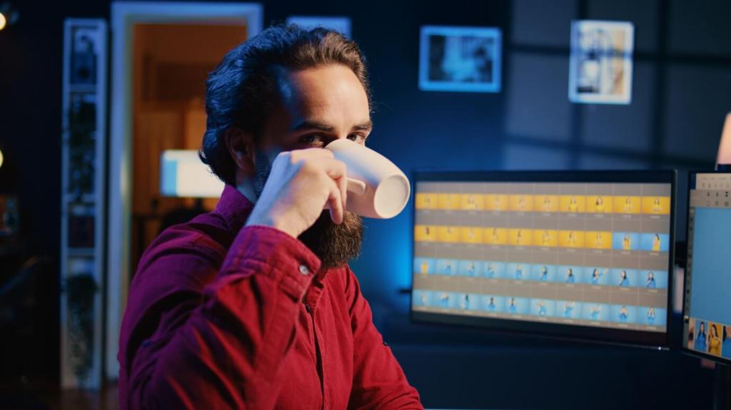 Trommelfellmaterialien, von Kalbfell bis Synthetik, verändern Wärme, Attack und Stimmungskonstanz. Metallkessel bringen Brillanz, Holz liefert Wärme. Spannreifen, Gratungen und Kesseltiefe prägen Obertöne. Experimentieren Sie mit Stimmungen und teilen Sie Ihre bevorzugten Kombinationen mit uns.